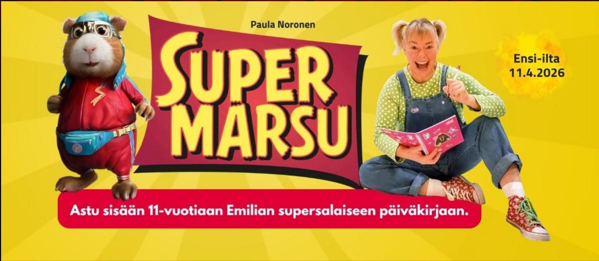 Koko perheen tapahtuma teatterinäytös Supermarsu 11.4.2026 klo 13.00 Varkauden teatterissa (ensi-ilta)