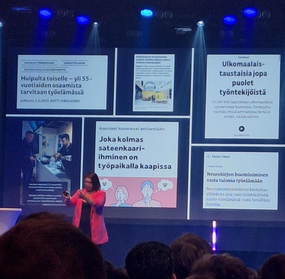 Tiina Helenius nosti puheenvuorossaan huonon julkisen talouden tilan heijastumista tulevaisuuden uskoon. Aicha Manai nosti moninaisuuden aidon hyödyntämisen ja kaikkien mukaan ottamisen työmarkkinoille.
