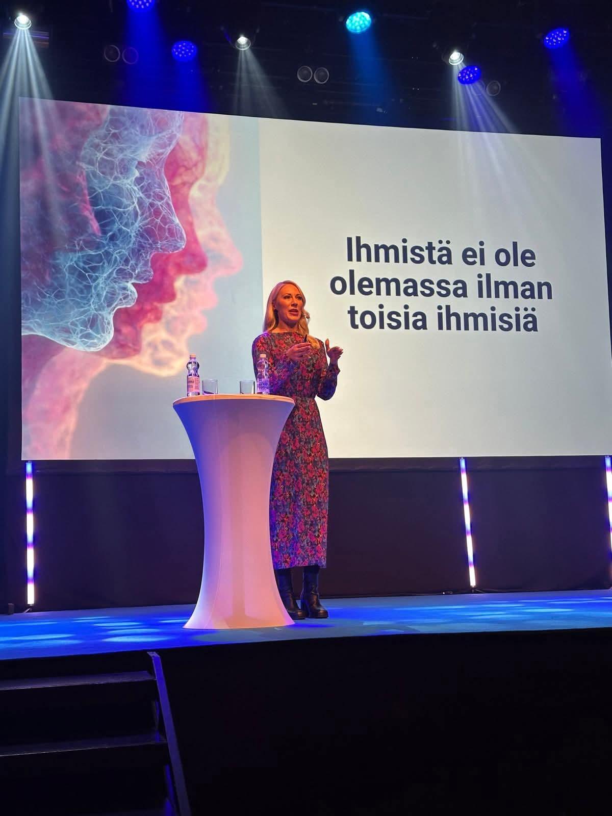 Mona Moisala avasi aivotutkimuksen kautta sen tärkeimmän mikä kiteytti jokaisen puheenvuoron yhteistä sanomaa: Ihminen tarvitsee ihmistä kehittyäkseen, tarvitsemme toisiamme.