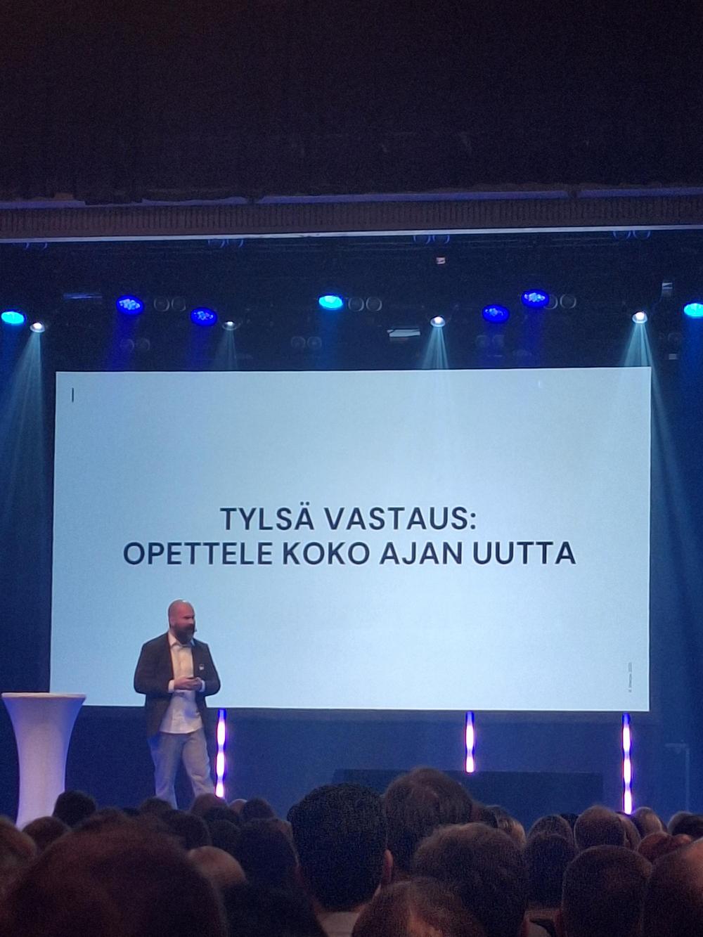 Lopuksi vielä Saku Tuomisen puheenvuorossa kiteytti: "Olennaista ei ole se mitä tapahtuu, vaan miten minä muutun sen mukaan mitä tapahtuu".